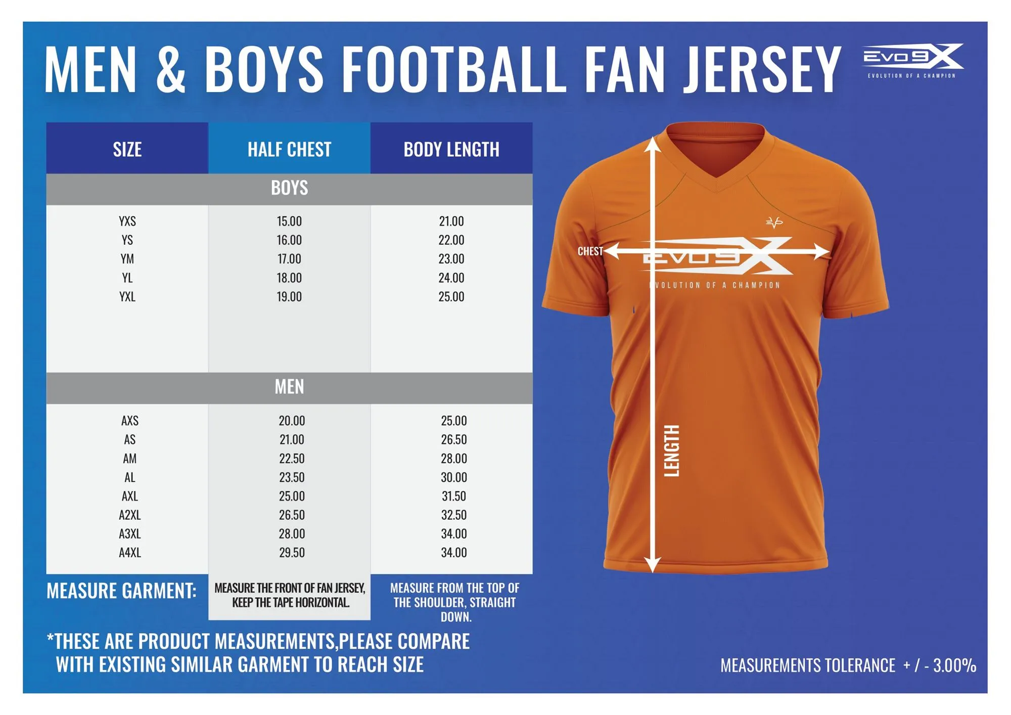 Football Fan Jersey Size Chart